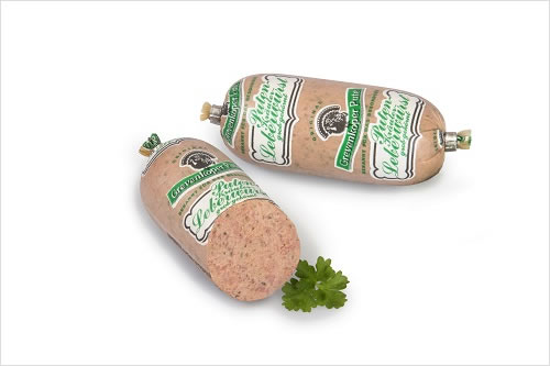 Putenfleisch (69%), Putenleber (24%), Putenfett, Nitritpökelsalz (Kochsalz, Konservierungsstoff: E250), Gewürze (u.a. Senf), Kräuter, Maltodextrin, Dextrose, Zucker, Glucosesirup, Würze, Gewürzaromen, Antioxidationsmittel: E300 und E301