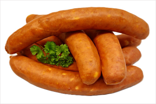 Fleischanteil 87% (davon Putenfleisch 65%, Schweinefleisch 22%), Käse (9%), Nitritpökelsalz (Kochsalz, Konservierungsstoff: E250), Gewürze (enthält Gelbsenfmehl), Dextrose, Antioxidationsmittel: E300 und E301, Speisesalz, Gewürzextrakte, Senfsaat, Maltodextrin, Würze, Glucosesirup, Schafsaitling, Reifekulturen, Rauch.