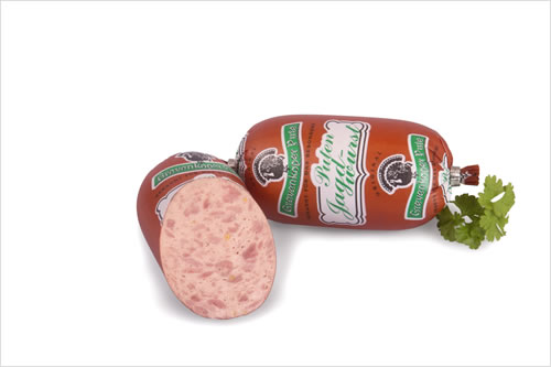Putenfleisch (79%), Putenfett, Trinkwasser, Nitritpökelsalz (Kochsalz, Konservierungsstoff: E250), Senfkörner, Knoblauch, Gewürzaroma, Dextrose, Gewürze, Antioxidationsmittel: E300 und E301