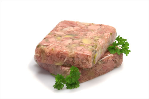 Putenfleisch (38%), Trinkwasser, Champignons (7%), Gurken (6%), Rindergelatine, Zucker, Nitritpökelsalz (Kochsalz, Konservierungsstoff: E250), Essig, Gewürze, Glucosesirup, Stabilisator: E300 und E331, Säuerungsmittel: E262 und E330, Dextrose, Aroma (mit Sellerie), Würze