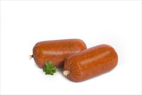 Putenfleisch(45%), Trinkwasser, Tomatenpulver, Saccharose, modifizierte Stärke E1422, Speisesalz, Palmöl, Hefeextrakt, Weizenmehl, Gewürze (u.a. Senf), Säuerungsmittel E330, Säureregulator E262, Würze, Farbstoff E160c, Laktose, Dextrose, Aromen