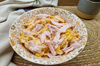 Weißkohl-Karottensalat mit geräucherter Putenbrust